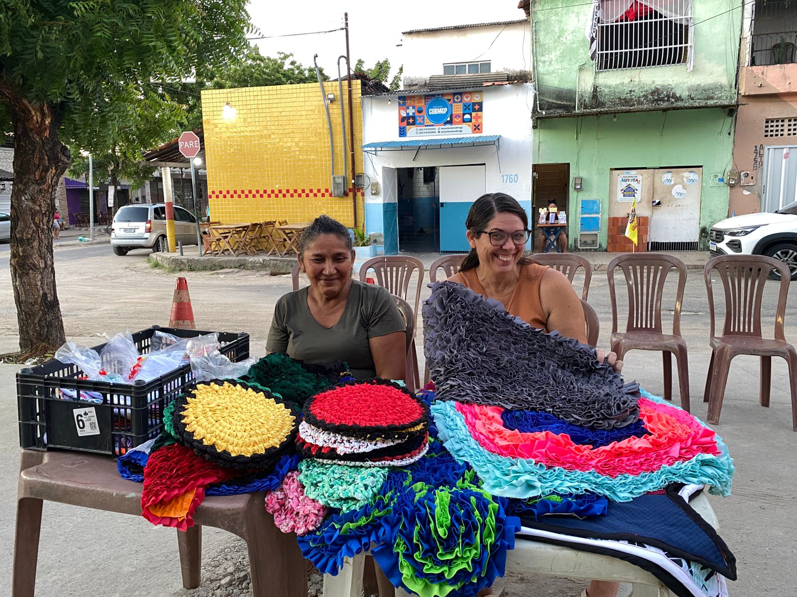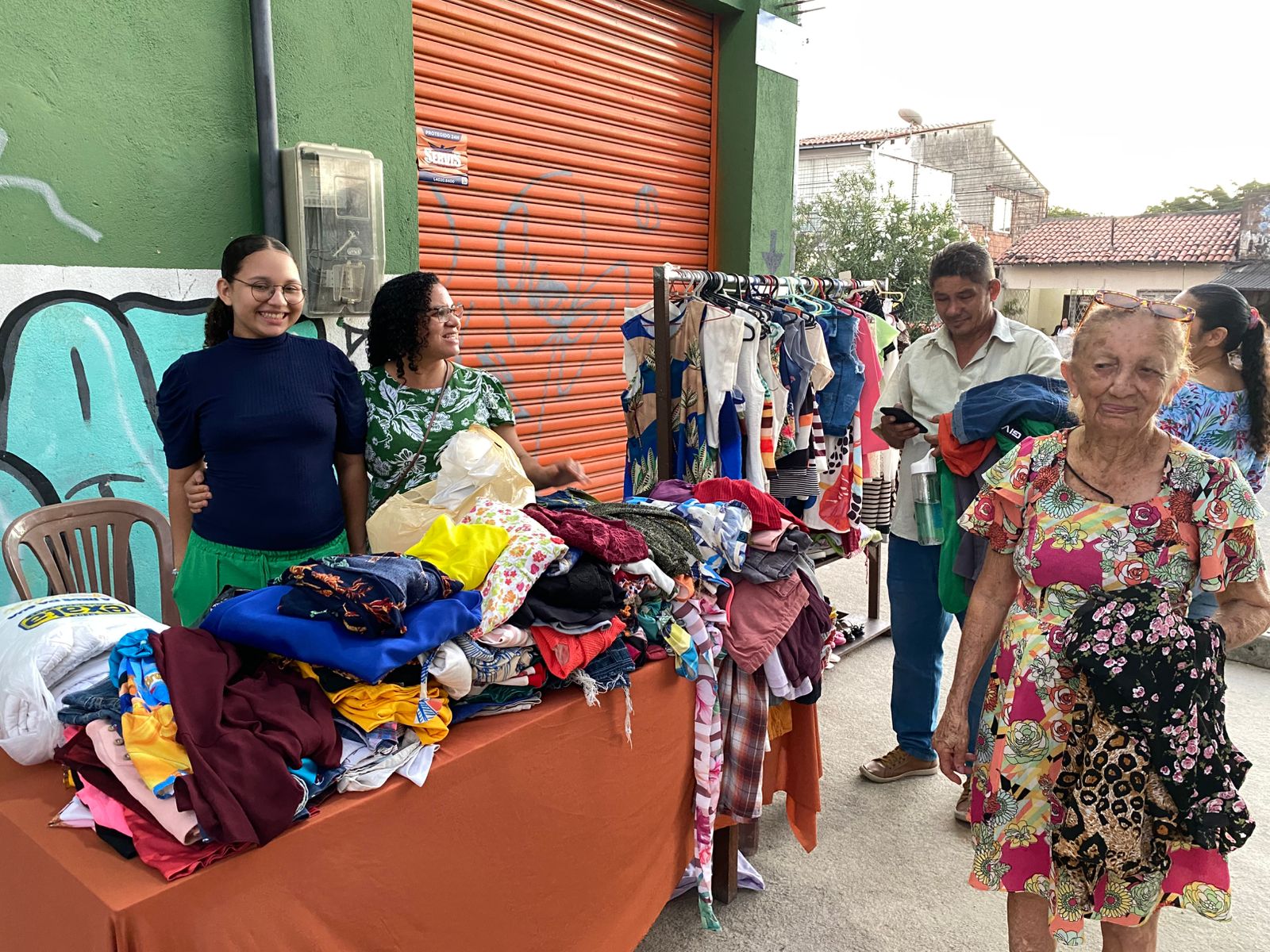 Um dos pilares do Tua Feira é a coleta e curadoria de materiais. Recebemos doações externas de roupas, acessórios e objetos, que passam por uma triagem cuidadosa para garantir qualidade, organização e apresentação. Ao mesmo tempo, produtos são produzidos internamente pelos artesãos e costureiros da associação, trazendo valor agregado, identidade própria e cuidado manual. Essa combinação permite que cada peça tenha história, propósito e função social, valorizando tanto a doação quanto o trabalho artesanal interno.